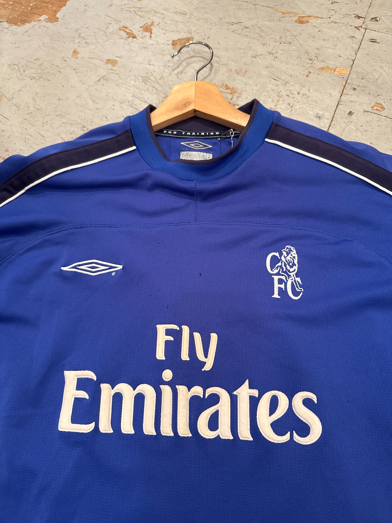このシーズンはジャンフランコ・ゾラやフランク・ランパードが活躍し、ロマン・アブラモビッチ時代直前の“プレ・ビッグクラブ期”を象徴する一着。シンプルかつクラシックなデザインできやすいですね。